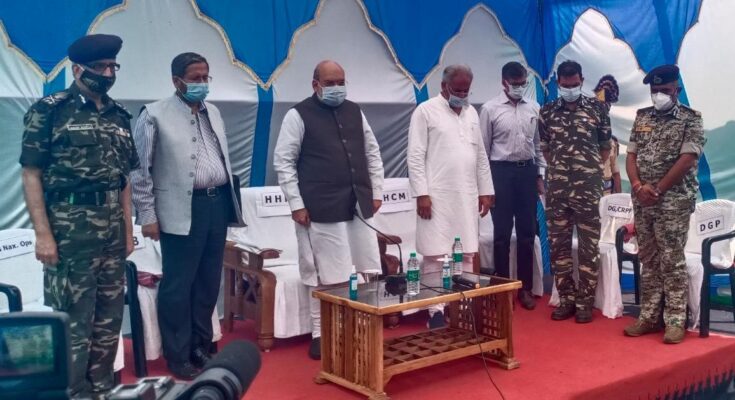 Raipur, 5 April 2021 . Chief Minister Mr. Bhupesh Baghel said that better strategy would be adopted in this fight against Naxalites. Chief Minister reached Basaguda CRPF Camp in Bijapur today and discussed about the current situation with CRPF and State Police Force officers and jawans. Union Home Minister Mr. Amit Shah was also present on the occasion. Everyone present at the camp observed two-minute silence and paid tribute to the jawans martyred in the Naxalite incident in Bijapur.