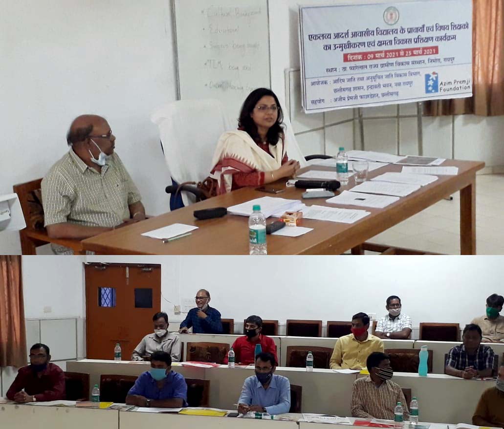 Raipur, 19 March 2021. Addressing the orientation and capacity development training session of the promoters and special teachers of Eklavya Adarsh Residential School in the state, Director, Tribal Development Department, Smt. Shammi Abidi said that knowledge acquisition is a continuous process. A person keeps on learning something throughout his life and increases his knowledge. He said that it is an important task to teach the students in the rural environment and to create a better future for them. The principal and subject teacher of Eklavya Adarsh Residential Schools is doing well. He said that take full advantage of the training session and inform the subject matter experts about their doubts, so that they can give a better solution.