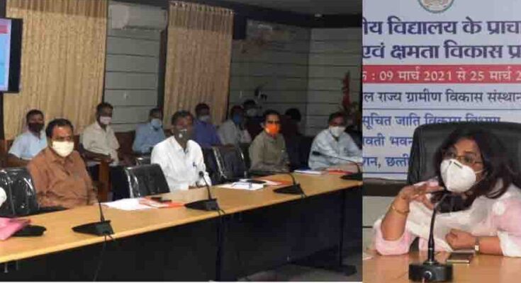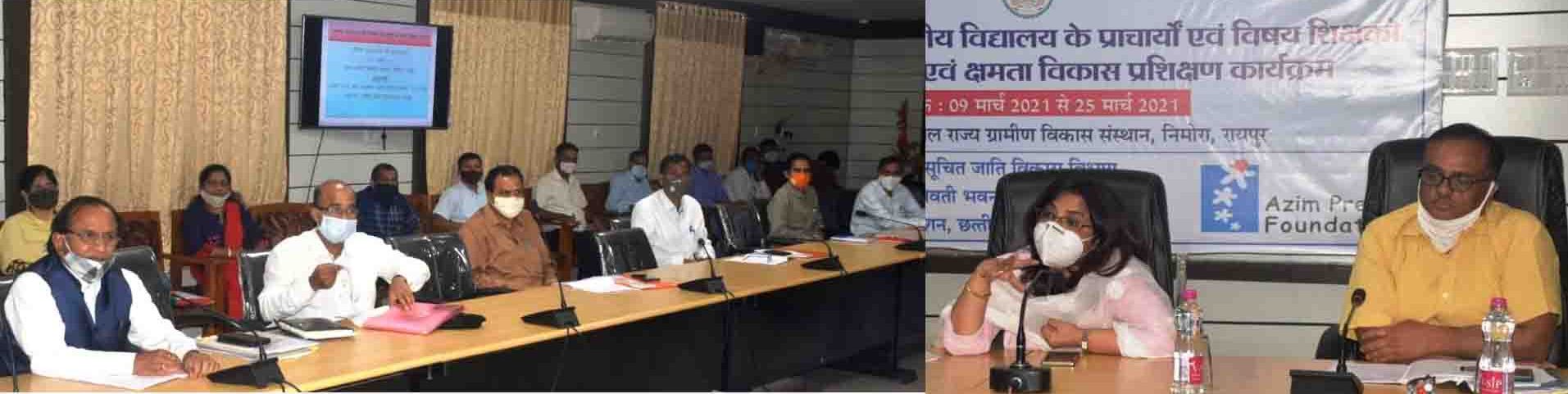 Raipur, 25 March 2021. In order to improve the quality of education among the tribal children studying in the Eklavya Model Residential Schools across the State of Chhattisgarh, a 4-day capacity enhancement Program for the Principals of the EklavyaModel Residential School on educational leadership and management and on subject content and pedagogy (Namely English, Hindi, Maths, Science and Social Science) for the teachers was organized at Thakur Pyarelal State Institute of Panchayat and Rural Development, Nimora, Raipur from 9th March to 25th March, 2021.