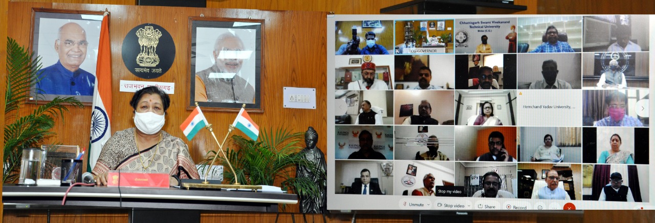 Raipur, 11 May 2021. The university is the center of higher education, they innovate through research. By doing more and more research on the corona crisis, solve this problem by using good technology, medicine or any other means that will help to face the corona crisis and get rid of it. This was stated by Governor Ms. Anusuiya Uike. She was giving her address in the virtual meeting of the chancellors of all government and private universities today. He instructed to conduct a survey of students in the university whose parents have died or have been severely affected in some way. He said that such students should be enlisted and their education continued, help them in this direction and inform me if there is a need to take initiative at the government or state level.