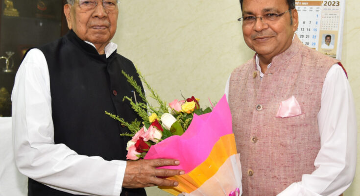 State Innovation Commission Chairman Shri Vivek Dhand paid a courtesy call on Governor Shri Vishwabhushan Harichandan at Raj Bhavan today. He briefed the Governor regarding the activities of the Commission and sought guidance from him. The governor told Mr. Dhand that the formation of the Innovation Commission is a good initiative. Public welfare schemes should be made through innovation to improve the standard of living of the general public.