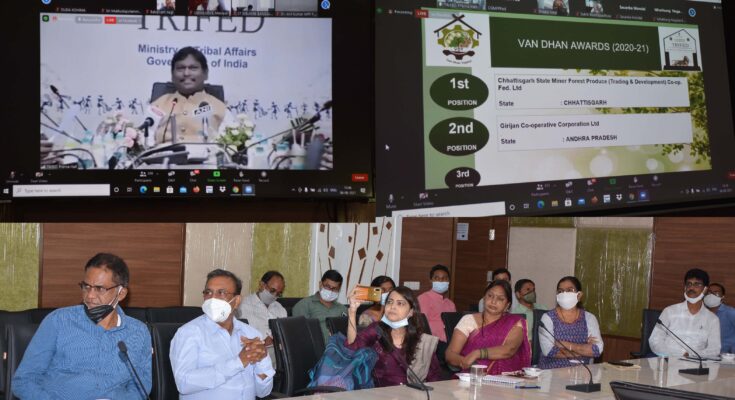 Raipur. 6 August 2021. Chhattisgarh, which has emerged as a model state in the field of minor forest produce collection, has been awarded ten awards in various categories by the Government of India. The state has got the first place in the country in six categories. Mahua sanitizer and tamarind chaska manufactured in the state have received awards in the new product and innovation category. 12 Van Dhan Kendras of the state have also received 15 state level awards. Union Tribal Affairs Minister Shri Arjun Munda presented these awards to Chhattisgarh in a virtual program organized in New Delhi today.