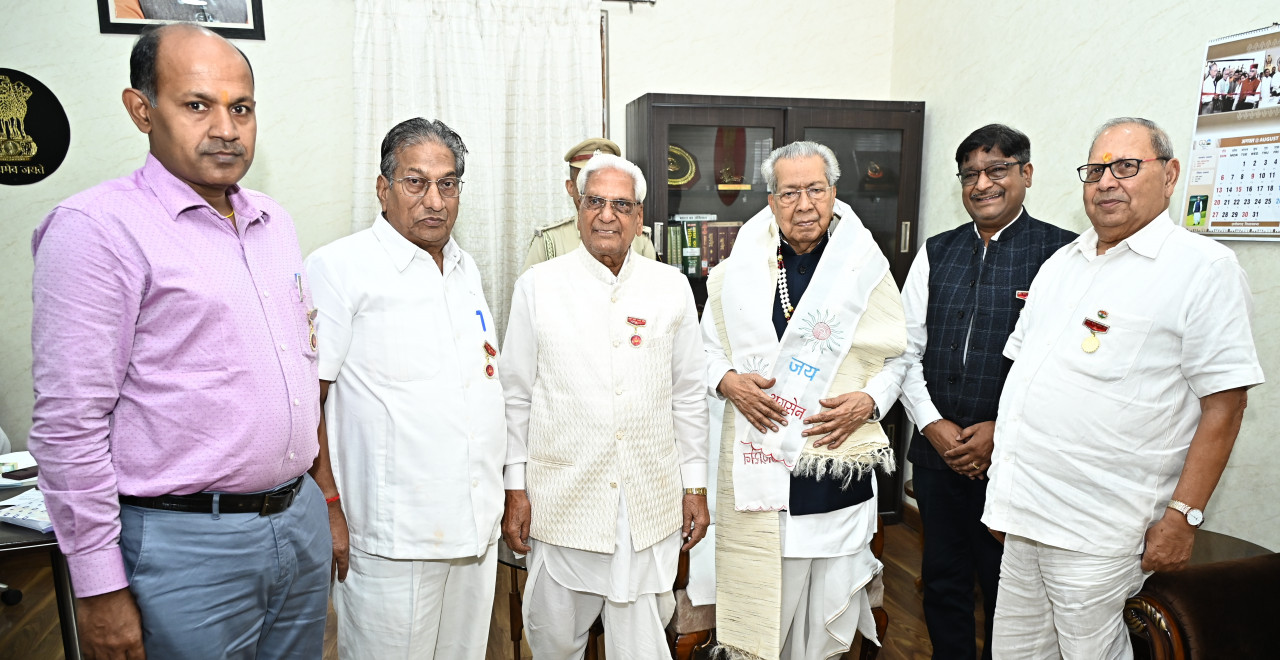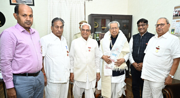 The delegation of Chhattisgarh Prantiya Agarwal Sangathan met Governor Mr. Vishwabhushan Harichandan at Raj Bhavan today, felicitated him by wearing shawl, shreefal, Agrasen scarf and Agrasen garland and also handed over the memorandum.