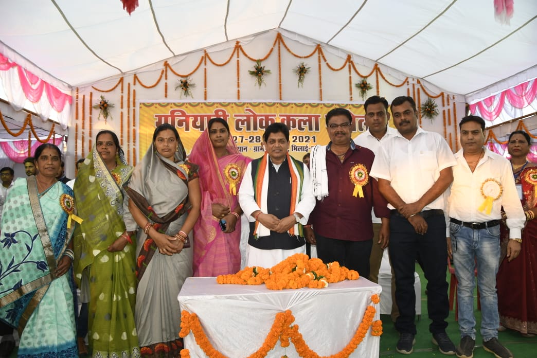 Raipur 27 February 2021.  Minister of Urban Administration and Development and Labor, Dr. Shivkumar Dahria attended the two-day folk art festival organized by Guru Ghasidas Arts and Literature Development Committee at village Ganiari in Durg district. On this occasion, he said that the work of preserving and saving the culture of Chhattisgarh is being done through Lokkala Mahotsav. The state government is also working to save the culture and tradition of Chhattisgarh. With the promotion of Chhattisgarhi culture, a government holiday has been started in Teej festivals here. He said that this festival is celebrated in the village with mutual participation by mutual participation. Such an event would continue in the village even further and all of you continued to enjoy it.