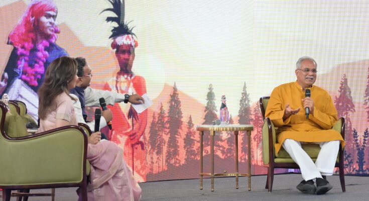 Mr. Baghel was addressing a program organized by NDTV on the theme of Chhattisgarhia Sable Badhiya at a private hotel in Nava Raipur today. A glimpse of Chief Minister Shri Baghel’s love for nature and connection with the soil of Chhattisgarh was also seen in the Sable Badhi Chhattisgarhiya program. At the end of the program on the request of the anchor, he wrote lines from the songs ‘Maati hohi tor chola re sangi’ and ‘Chola mati ke he re akar ka bharosa… Chola mati ke he re’………. Singing too.