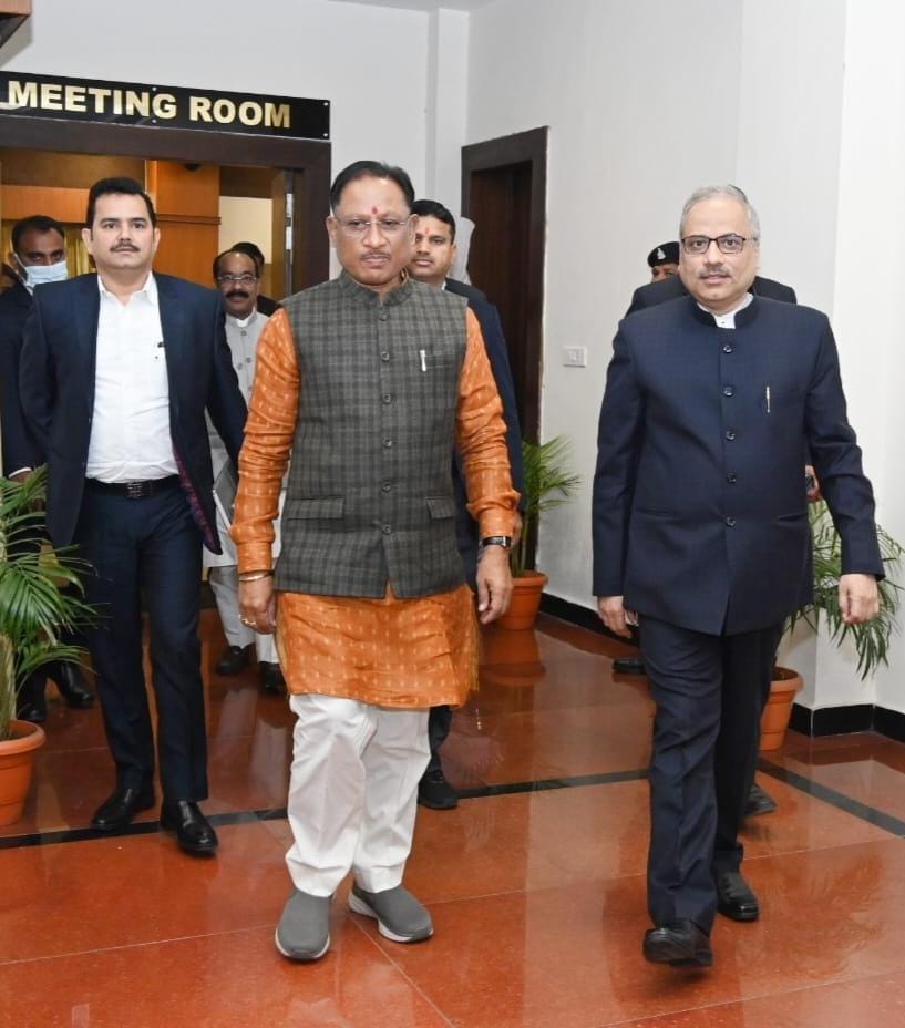Chief Justice of Chhattisgarh High Court, Justice Ramesh Sinha met Chief Minister Shri Vishnu Dev Sai today at the New Circuit House in Nava Raipur, Atal Nagar. Deputy Chief Minister Shri Arun Saav was also present on this occasion.
