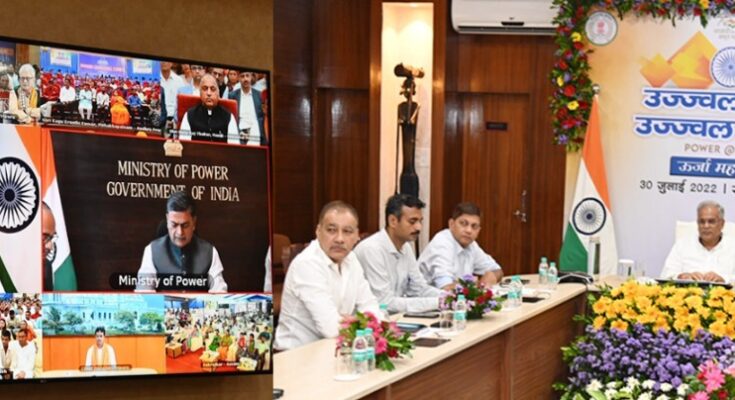 Chief MinisterBhupesh Baghel today attended the closing ceremony of the ‘Ujwal Bharat Bright Bhavishya – Power@2047’ program of the Union Ministry of Power from his residence office. Prime Minister Shri Narendra Modi was the chief guest of this program organized through video conferencing. The Prime Minister launched the Prime Minister’s Revamped Distribution Sector Scheme to improve the operational efficiency and financial condition of discom companies and power departments at the function. Chief Secretary Mr. Amitabh Jain, Secretary of Culture Department Mr. Anbalgan P., Secretary of Energy Department Mr. Ankit Anand, CEO of Creda Mr. Alok Katiyar and Director of Culture Department Mr. Vivek Acharya were also virtually present in the program from Chief Minister’s residence office. On the other hand, from New Delhi, the Union Minister for New and Renewable Energy, Shri R.K.