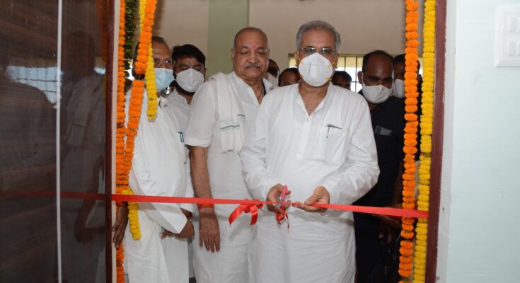 Raipur , 02 October 2021. Chief Minister Bhupesh Baghel inaugurated the library , library in the Government Swami Atmanand (Rathi) English Medium School , operating in Bemetara , on the occasion of the 152nd birth anniversary year of the Father of the Nation Mahatma Gandhi . Before the inauguration, Mr. Baghel garlanded the oil paintings of Mahatma Gandhi and Swami Atmanand ji. On the demand of Bemetara MLA Mr. Ashish Chhabra, Chief Minister Mr. Baghel also announced to construct indoor hall and garden for excellent educational facilities for the students. Chief Minister Shri Baghel visited the exhibition on the biography of the Father of the Nation Mahatma Gandhi by the school students after the inaugural program. The students discussed Mahatma Gandhi’s childhood , school life and freedom movement .Chief Minister Mr. Baghel was mesmerized by presenting a lively tableau based on the moments spent in Sabarmati Ashram. While congratulating the students on Gandhi Jayanti, Shri Baghel exhorted them to follow his ideals , the path of truth and non-violence. On this occasion Home Minister Shri Tamradhwaj Sahu , Agriculture Minister Shri Ravindra Choubey , Parliamentary Secretary Shri Gurudayal Banjare , MLA Shri Ashish Chhabra , Collector Shri Bhoskar Vilas Sandipan , Principal Smt. Sudesha Chatterjee and other teachers , teachers , public representatives , dignitaries were present. On this occasion, Chief Minister Shri Baghel also planted saplings in the school premises.
