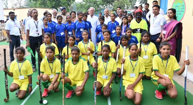 Chief Minister Shri Bhupesh Baghel met the players of girls’ hockey team of Higher Secondary School, Ramgarh and encouraged them. These hockey players are from remote villages of Sonhat block of Korea district. He has also participated in state level competition. On the request of the players of the hockey team, Chief Minister Mr. Baghel scored the goal with a penalty stroke. The players said that the Chief Minister said that their areas are cut off from the world due to the big problem of mobile network. The Chief Minister assured a solution to this problem.