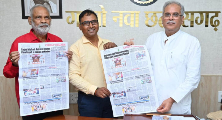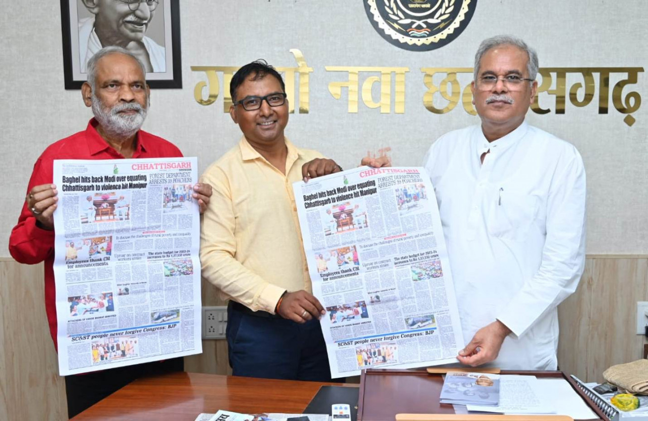Chief Minister Mr. Bhupesh Baghel today released the Chhattisgarh page of the national English daily “The Free Press Journal” at his residence office here. During this, the state correspondent of the national English daily The Free Press Journal Mr. Awadhesh Kumar Malik told that the Chhattisgarh page will be published regularly. The main purpose of publishing this page is to bring the work and progress done in Chhattisgarh in the last four and a half years to the attention of the whole world. The Chief Minister congratulated and congratulated Mr. Tomar and Mr. Malik on the occasion.