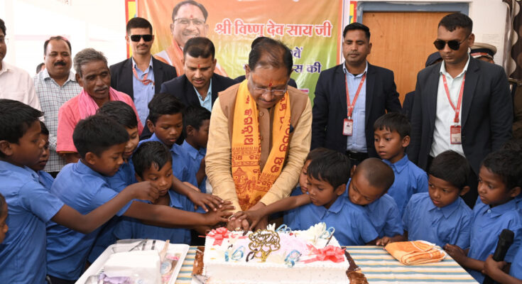 Chief Minister Shri Vishnu Dev Sai celebrated his birthday with children at Bagiya Government Scheduled Tribe Boys Ashram. On this occasion, the Chief Minister cut the cake and fed the cake to the children. The Chief Minister pampered the children a lot on this occasion. Padmashree Shri Jageshwar Yadav was also present on this occasion.