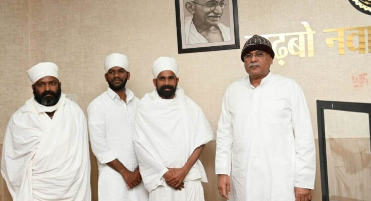 Raipur, 19 December 2021. Delegation of Sant Kabir Sansthan and Reality Foundation Devpur (Dhamtari) had a courtesy call on Chief Minister Bhupesh Baghel at his residence office here this evening. The delegation invited Chief Minister Mr. Baghel to attend the Kabir Satsang Mela to be held on 26 December 2021 at Devpur-Dongeshwar Dham. On this occasion, the patron-convener of Sant Kabir Sansthan and Reality Foundation, Shri Ravikar Saheb, Shri Bhavkar Saheb and Shri Chiranjeev Saheb were present along with others.