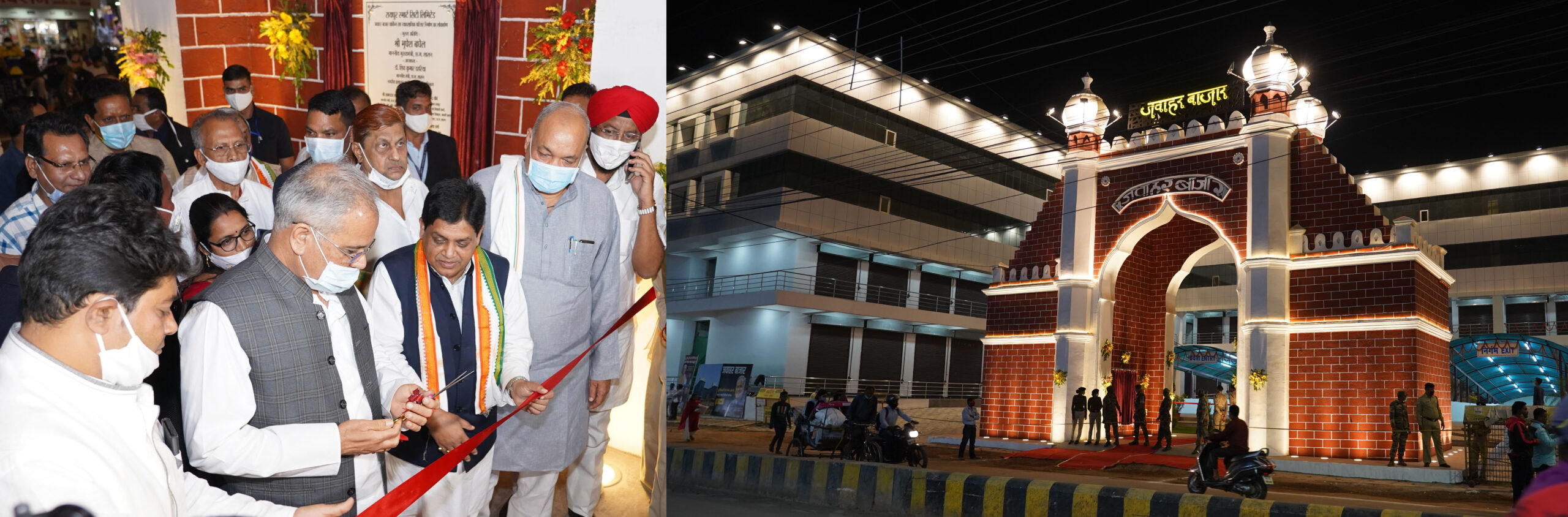 Raipur, 24 November 2020. Chief Minister Bhupesh Baghel inaugurated the Jawahar Bazaar parking cum commercial complex in the heart of the capital Raipur this evening. This historic commercial complex has been renovated and renovated by Raipur Smart City Limited at a cost of about Rs 23 crore 75 lakh. In the renovation, the historic main gate of the old market has been kept intact, due to which its beauty has increased even more.
