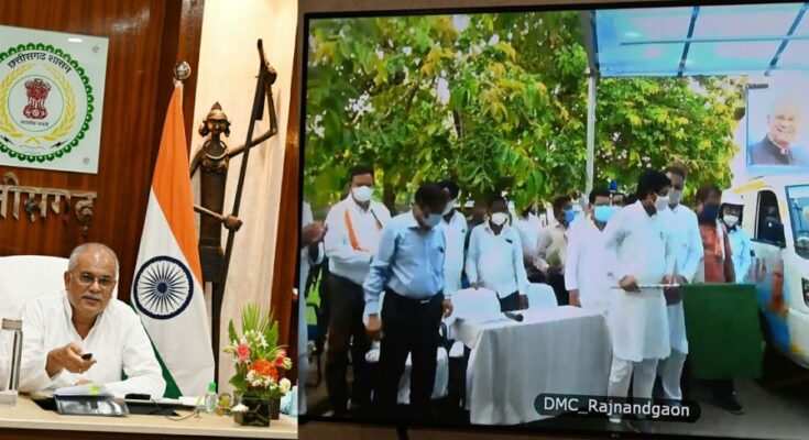 Chief Minister Mr. Bhupesh Baghel said that the crisis in Corona has not been averted. Along with the development of resources, it is also necessary that we follow the social rules of the Corona period. Adopt social distancing. Used to wash hands from time to time. Avoid overcrowding in social events. Be aware of yourself, make others aware too. When your shift comes, do get vaccinated. Vaccination and masks are the best way to avoid corona. We are confident that, like urban areas, we will defeat Corona as soon as possible in rural areas. From our health workers to Anganwadi workers in rural areas, all are engaged in this campaign. Health facilities in rural areas are being strengthened continuously. Patients can get treatment quickly and serious patients can be rushed to the hospital with promptness, Arrangements are being made for this. Today, four medical ambulances are being launched in Rajnandgaon. These have been arranged under the head of the Scheduled Castes Development Authority. These ambulances are being made available to Community Health Center Ghumka, Community Health Center Dongargarh, Primary Health Center Mudhipar, Primary Health Center Markam Tola. The health infrastructure of these areas will be further strengthened through these ambulances.