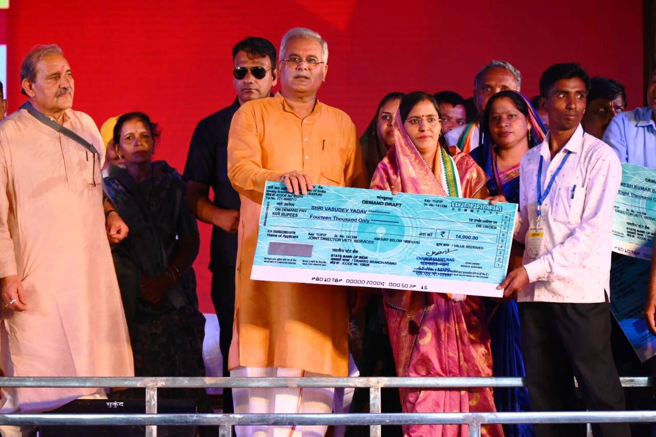 Similarly, 10 people selected through the placement camp were symbolically given job offer letters. Margin money grant was given to 3 beneficiaries under the Chief Minister’s Youth Self-Employment Scheme. Chief Minister Mr. Baghel inspected the stalls of Agriculture Development and Farmers Welfare and Biotechnology Department and distributed urad minikit to 15 beneficiaries and Arhar minikit to 12 beneficiaries, sprayer to 02 beneficiaries and 50% zinc sulfate to 4 beneficiaries under the National Food Security Mission. On percentage grant, vermicompost distribution to 06 beneficiaries and 04 farmers honored.