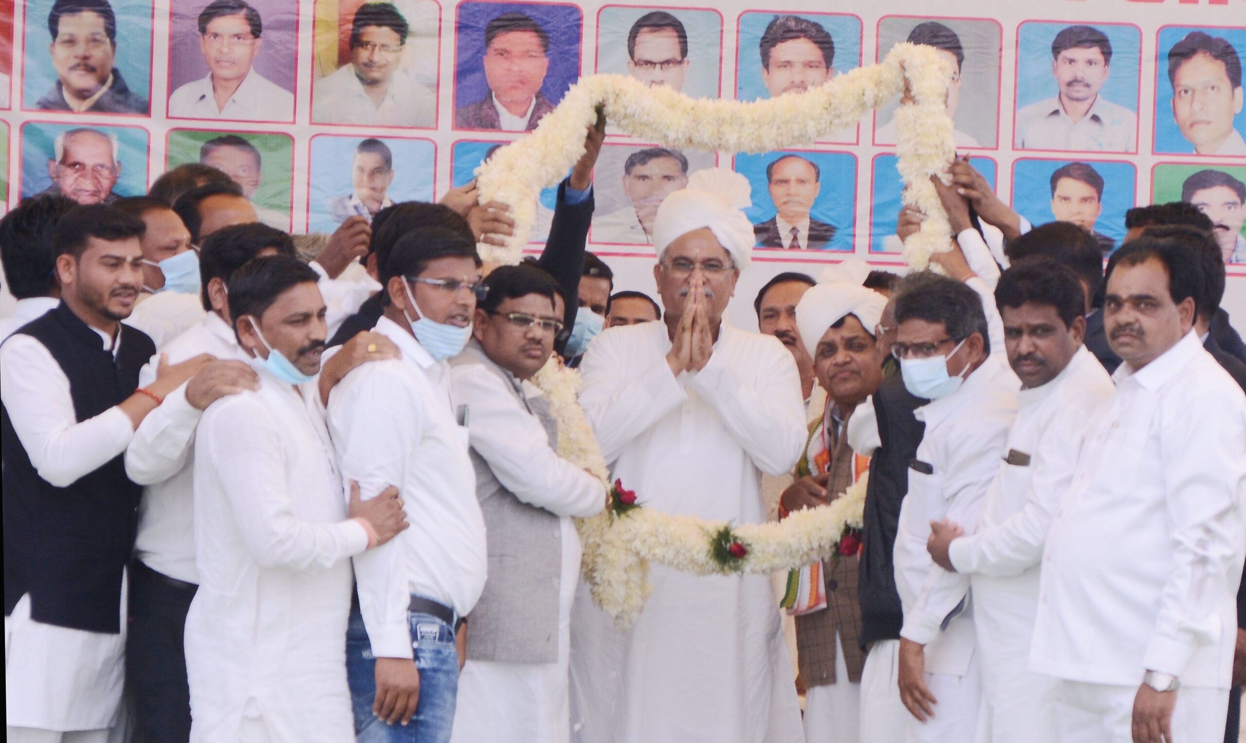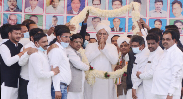 The Chief Minister said that dung is being procured from cow-keepers and shepherds under the Godhan Nyay Yojana. So far Rs 108 crore has been given in the bank accounts of cow-keepers and shepherds. He said that various beneficial schemes like Rajiv Gandhi Kisan Nyay Yojana are being operated in the state. The economic condition of the farmers has been strengthened by the operation of these schemes. This has been possible only with the blessings of Baba. Chief Minister Mr. Baghel offered prayers to Jaitkham, a symbol of faith and belief of the society and wished for the prosperity of the people. In the program, the people of the society welcomed Chief Minister Mr. Baghel by wearing a Gajmala.