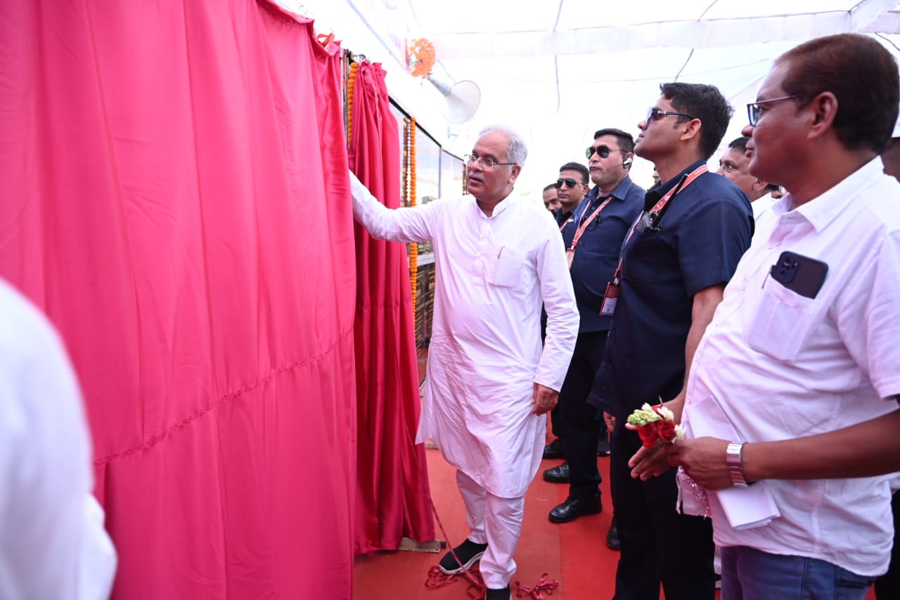 Chief Minister Shri Bhupesh Baghel has given big gifts to the residents of Patan assembly constituency. Today, he inaugurated 768 development works and performed Bhoomi Pujan in a program organized at the Assembly Headquarters, Patan. This includes inauguration of 137 works worth Rs 55 crore 40 lakh 51 thousand and bhoomi pujan of 631 works costing Rs 32 crore 23 thousand. Before attending the program, Chief Minister Mr. Baghel paid tribute by garlanding the statue of Brahmin Swami Atmanand ji at Atmanand Chowk in Patan. On this occasion, Chairman of Nagar Panchayat Patan, Mr. Bhupendra Satya, Vice President Mr. Baldau Bhale, Chairman of Chhattisgarh Workers Craft Board Mr. Tarun Bijora, Member of Chhattisgarh Khadi Village Industries Board Mr. Hemant Dewangan were specially present.