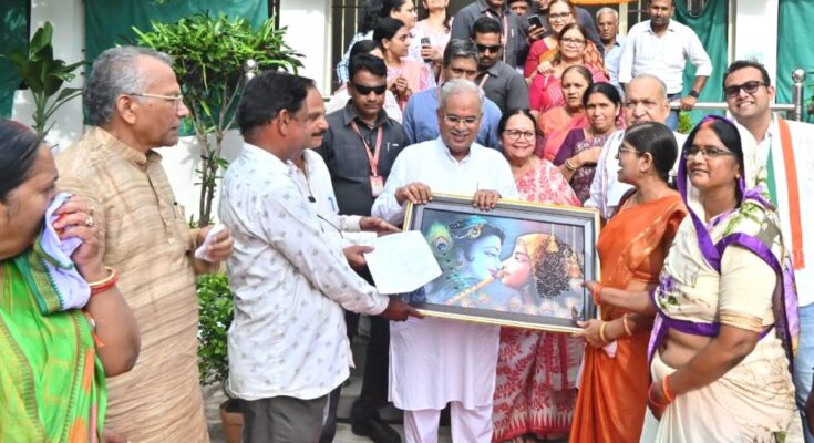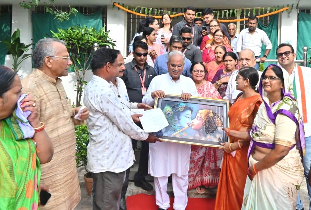 Chief Minister Mr. Bhupesh Baghel reached the home village residence of Minister Mr. Ravindra Choubey after his program today. There he met the family members of Shri Choubey. The family members accorded warm welcome to the Chief Minister in a traditional way, the Chief Minister had food with his family members. On this occasion, Agriculture Minister Mr. Tamradhwaj Sahu, Parliamentary Secretary and MLA Mr. Gurudayal Singh Banjare, MLA Bemetara Mr. Ashish Chhabra were also present.