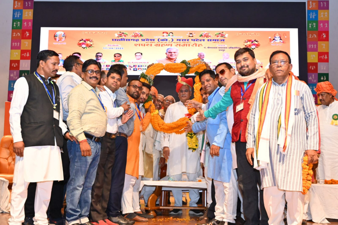 Chief Minister Mr. Bhupesh Baghel reached the swearing-in ceremony of office bearers organized by Chhattisgarh Marar Patel Samaj at Pt.