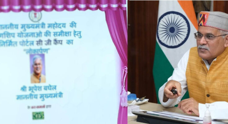 Raipur, 22 November 2021. Chief Minister Mr. Bhupesh Baghel inaugurated ‘CG Camp Portal’ today at his residence office, before the Cabinet meeting. This portal is an advanced online platform for the monitoring of State Government’s priority schemes such as Godhan Nyay Yojana, Chief Minister Haat Bazaar Clinic Yojana, Mukhyamantri Suposhan Abhiyan, CG E-District, Chief Minister Urban Slum Health Scheme, Narva-Garva-Gurua-Ghurva-Badi Yojana.