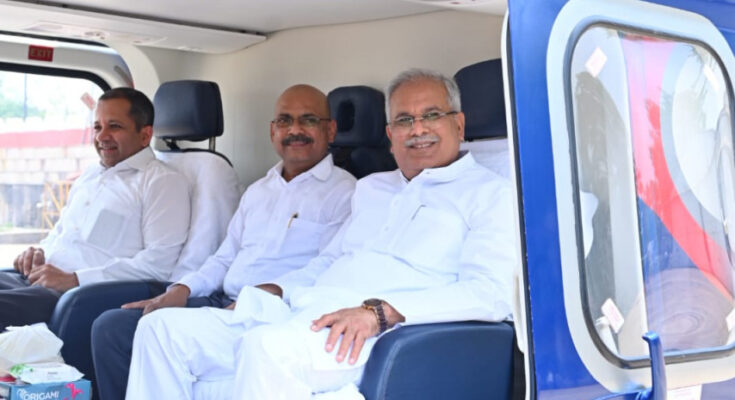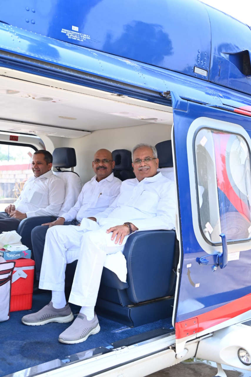 Raipur: Chief Minister Mr. Bhupesh Baghel left for Bilasa Devi Kenvat Airport (Chakarbhata), Bilaspur district from Raipur Police Line Helipad.