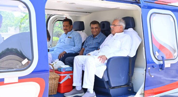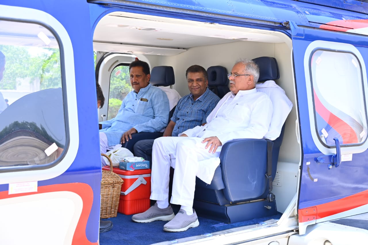 Chief Minister Mr. Bhupesh Baghel left for village Singarpur, Balodabazar-Bhatapara district from Raipur police line helipad
