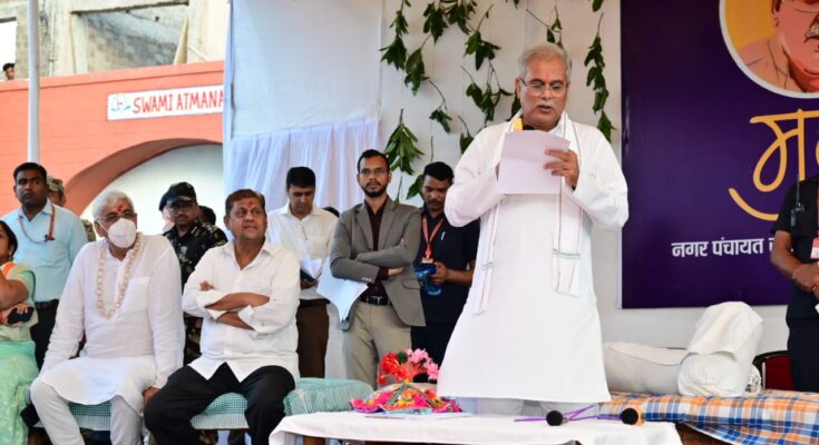 Chief Minister Shri Bhupesh Baghel, as part of his state-wide meet-and-greet program, reached Kawardha assembly constituency in Kabirdham district today. During this, the Chief Minister directly interacted with the general public in Kawardha’s remote Vananchal village Jhalmala and Nagar Panchayat Sahaspur Lohara. The Chief Minister, in a direct interaction with the people in the meeting, included Rajiv Gandhi Kisan Nyay Yojana, Debt Waiver Scheme, Swami Atmanand English Medium School, Godhan Nyay Yojana, Rajiv Gandhi Bhumiless Grameen Krishi Mazdoor Nyay Yojana, Chief Minister Suposhan Abhiyan, Took information and feedback about the implementation of other schemes including Mukhyamantri Haat-Bazar Yojna.