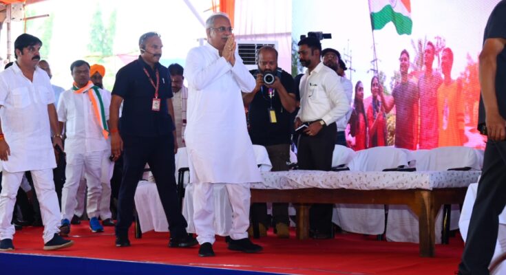 Chief Minister Mr. Bhupesh Baghel reached the Government Kakatiya PG College Ground, Dharampura, Jagdalpur, the headquarters of Bastar division, to meet the youth.