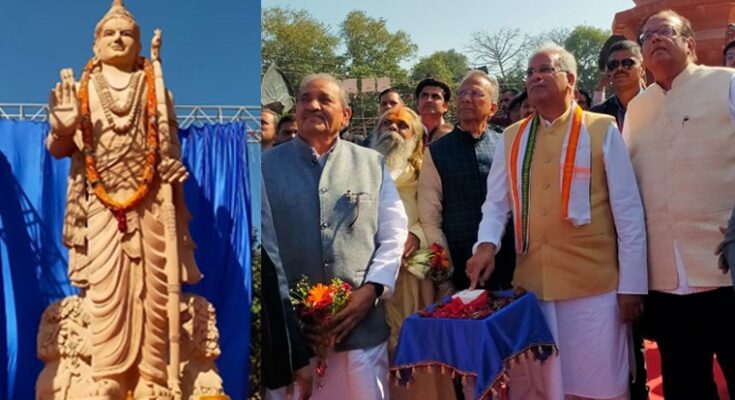 Chief Minister Bhupesh Baghel today unveiled a grand 25 feet tall statue of Lord Shri Ram at Rajim Mahotsav site. This idol has been prepared in a short span of 5 months. 20 craftsmen from Odisha have played a major role in preparing this grand and huge idol. It is hand carved from Bilha stone of Chhattisgarh. The idol has been enshrined in a newly constructed platform of 8 feet high. Its magnificence is made on seeing it. Chief Minister Mr. Bhupesh Baghel reached Shri Rajiv Lochan Temple and offered prayers and wished for the prosperity and prosperity of the state.
