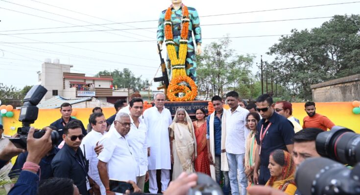 Chief Minister Mr. Bhupesh Baghel unveiled the statue of martyr Chumman Yadav at Tiranga Chowk in Durg Vaishali Nagar Cantonment. The Chief Minister paid tribute to martyr Chumman Yadav by offering a wreath on his statue.