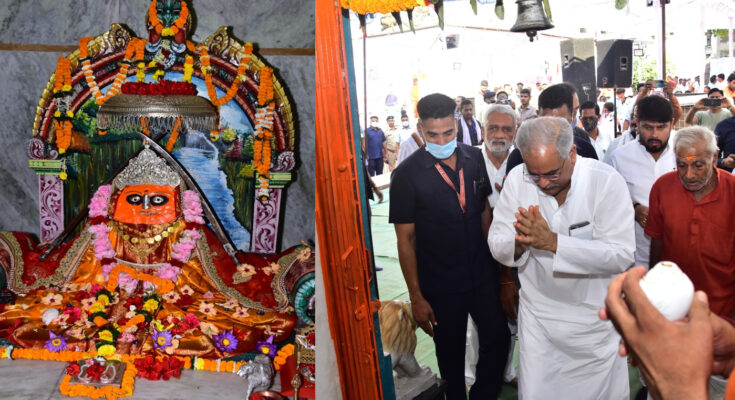 Chief Minister Bhupesh Baghel reached village Deurgaon in Saja development block of Bemetara district today. He had darshan of Mother Goddess in the historic Mahamaya temple of the village and prayed for the happiness, prosperity and happiness of the people of the state. Shri Baghel announced to start a primary health center in Deurgaon on the request of the villagers.