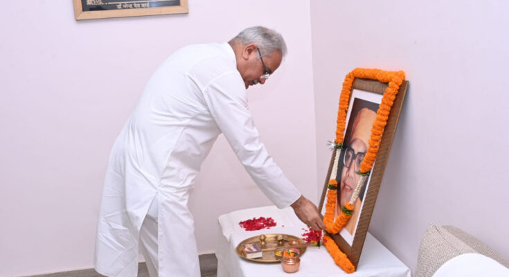 Chief Minister Mr. Bhupesh Baghel paid tribute to social reformer and educationist Swami Atmanand by garlanding his photograph on his death anniversary at his residence office today. On this occasion, the Chief Minister said that Swami Atmanand ignited the culture of human service and education in Chhattisgarh. He described the service of suffering humanity as the biggest religion. Chhattisgarh has been his workplace. Swami Atmanand inculcated rites in children, service among youth and spiritual satisfaction among elders in urban and tribal areas. The thoughts of Swami Vivekananda also had a deep impact on him and he spent his whole life in the service of the poor.