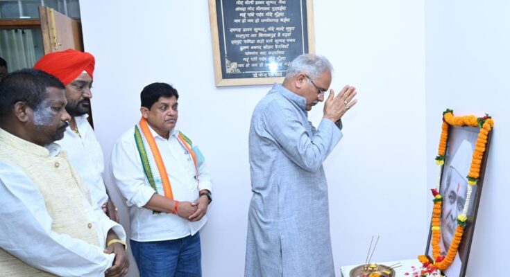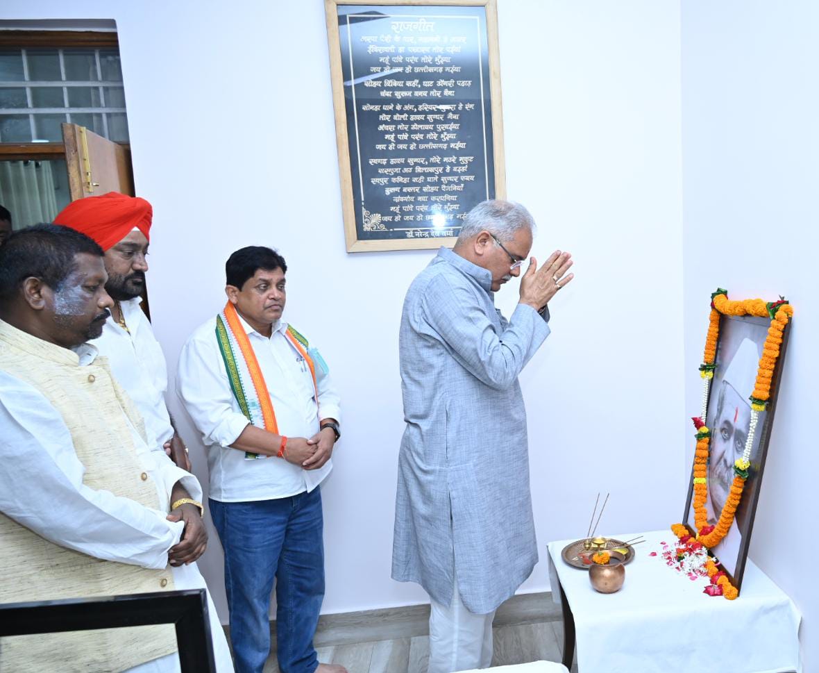 Chief Minister Bhupesh Baghel paid homage to the famous freedom fighter of Chhattisgarh late Vaman Baliram Lakhe by paying floral tributes on his photo on his birth anniversary at the Chief Minister’s residence today. Urban Administration and Development Minister Dr. Shivkumar Dahria was also present on this occasion.