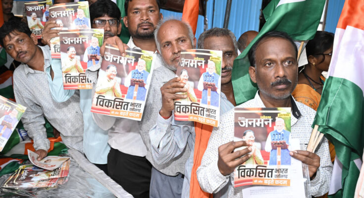 The Public Relations Department distributed the ‘Janman’ booklet among the public during today’s Jandarshan programme at the Chief Minister’s residence. This booklet is designed to inform citizens about the state government’s public welfare schemes, policies, and achievements. The goal of distributing the booklet is to raise awareness among the citizens about these schemes, ensuring that more people can benefit from them.