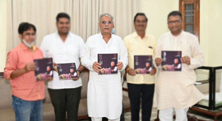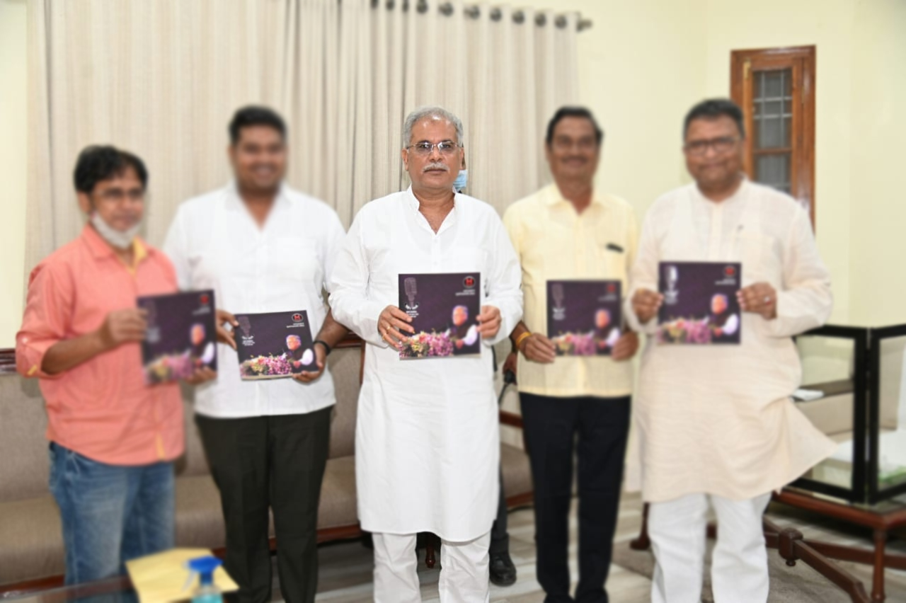 Raipur 24 September 2021. Chief Minister Shri Bhupesh Baghel released the monograph published by Mukund Radio at his residence office late last evening. In this monograph, a visual document of nearly six decades of undivided Madhya Pradesh and Chhattisgarh from 1952 to 2021 is compiled. The Director of Mukund Radio, Mr. Sanjay Mohdiwale told the Chief Minister that his father, Late Shri. Mukund Rao Mohdiwale started the tradition of keeping pictorial details of all political-cultural programs, Which today his third generation is also playing. In this way, there is a miniature gallery of date wise photographs of celebrities who have participated in the programs organized in Chhattisgarh region from black and white era to today’s digital age. The documents of these photographs have been published in the form of monographs. Congratulating Mukund Radio Sansthan on the publication of the monograph, Chief Minister Shri Bhupesh Baghel said that collecting such a photographic document, which records all the personalities of the state, and saving it for decades and publishing it sequentially, is very important and important in itself. Commendable work. The author and editor of the monograph, Mr. Rajesh Ganoudwale, told the Chief Minister that the first President in the book, Late. Dr Rajendra Prasad, former Prime Minister Late. Shri Morarji Desai, Late. Smt. Indira Gandhi, Late. Mr. Chandrashekhar, Mr. Shri Atal Bihari Bajpayee, Former President Late. Giani Zail Singh, Mr. Shri Ravi Shankar Shukla, Mr. Shri Manna Dey, Shri Pankaj Udhas, Late. Begum Akhtar, Late. From the arrival of celebrities like Jagjit Singh to Chhattisgarh, select photos from 2 years of Chief Minister Mr. Baghel’s tenure are included. Chief Minister Bhupesh Baghel visited the monograph and refreshed the memories of the old programs organized in the state in which he himself was present. He self-signed a copy of the monograph and wrote in a congratulatory message that Mukund is a well-known name for Radio Chhattisgarh. His presence in every major event is a sign of success. This book is the journey of Mukund Radio. Chairman of Chhattisgarh State Text Book Corporation Mr. Shailesh Nitin Trivedi and Mr. Sameer Mohdiwale were present on this occasion. From the arrival of celebrities like Jagjit Singh to Chhattisgarh, select photos from 2 years of Chief Minister Mr. Baghel’s tenure are included. Chief Minister Bhupesh Baghel visited the monograph and refreshed the memories of the old programs organized in the state in which he himself was present. He self-signed a copy of the monograph and wrote in a congratulatory message that Mukund is a well-known name for Radio Chhattisgarh. His presence in every major event is a sign of success. This book is the journey of Mukund Radio. Chairman of Chhattisgarh State Text Book Corporation Mr. Shailesh Nitin Trivedi and Mr. Sameer Mohdiwale were present on this occasion. From the arrival of celebrities like Jagjit Singh to Chhattisgarh, select photos from 2 years of Chief Minister Mr. Baghel’s tenure are included. Chief Minister Bhupesh Baghel visited the monograph and refreshed the memories of the old programs organized in the state in which he himself was present. He self-signed a copy of the monograph and wrote in a congratulatory message that Mukund is a well-known name for Radio Chhattisgarh. His presence in every major event is a sign of success. This book is the journey of Mukund Radio. Chairman of Chhattisgarh State Text Book Corporation Mr. Shailesh Nitin Trivedi and Mr. Sameer Mohdiwale were present on this occasion. in which he himself was present. He self-signed a copy of the monograph and wrote in a congratulatory message that Mukund is a well-known name for Radio Chhattisgarh. His presence in every major event is a sign of success. This book is the journey of Mukund Radio. Chairman of Chhattisgarh State Text Book Corporation Mr. Shailesh Nitin Trivedi and Mr. Sameer Mohdiwale were present on this occasion. in which he himself was present. He self-signed a copy of the monograph and wrote in a congratulatory message that Mukund is a well-known name for Radio Chhattisgarh. His presence in every major event is a sign of success. This book is the journey of Mukund Radio. Chairman of Chhattisgarh State Text Book Corporation Mr. Shailesh Nitin Trivedi and Mr. Sameer Mohdiwale were present on this occasion.