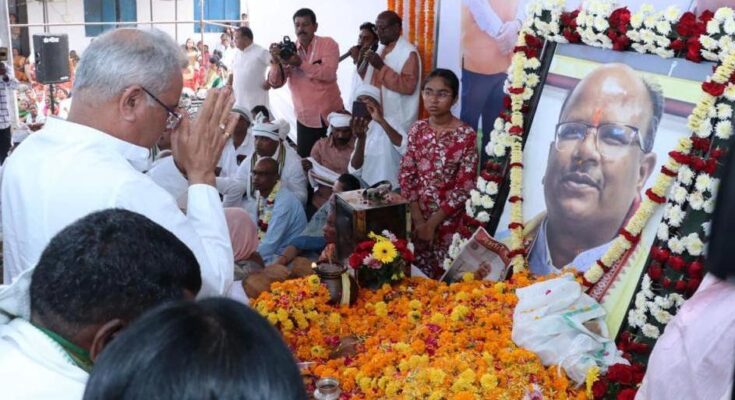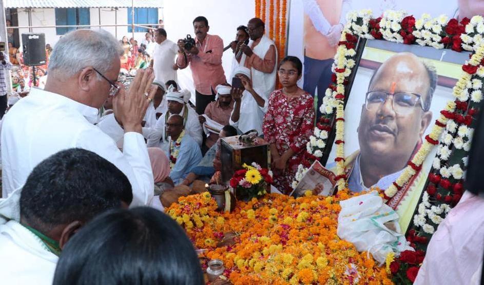 Chief Minister Shri Bhupesh Baghel reached Nathianwagaon in Kanker district today to pay tribute to the Deputy Speaker of the Vidhan Sabha, Late Shri Manoj Singh Mandavi and attend the peace-banquet program. He reached there Mata Tripura Sundari temple and offered prayers. The Chief Minister paid homage to the Deputy Speaker of Chhattisgarh Legislative Assembly, Late Shri Manoj Singh Mandavi by laying flowers at his Samadhi. Chief Minister Shri Baghel remembered Late Shri Manoj Singh Mandavi and said that he was a simple, easy-going, soft-spoken popular leader. He always kept strongly raising the problems of his area in the assembly. The Chief Minister consoled and consoled the bereaved family of Late Shri Mandavi. He said that late Shri Mandavi was known as a politician from his student life. He was first elected a member of the undivided Madhya Pradesh Legislative Assembly in the year 1998. In the same tenure, when the newly formed Chhattisgarh state was formed, he was given the responsibility of the Minister of State for Home, after which in the year 2013 and 2018 he was elected as a member of the Chhattisgarh Legislative Assembly and in the year 2019 he was elected as the Deputy Speaker of the Chhattisgarh Legislative Assembly. His demise is an irreparable loss for all of us, Kanker district as well as the entire state of Chhattisgarh.