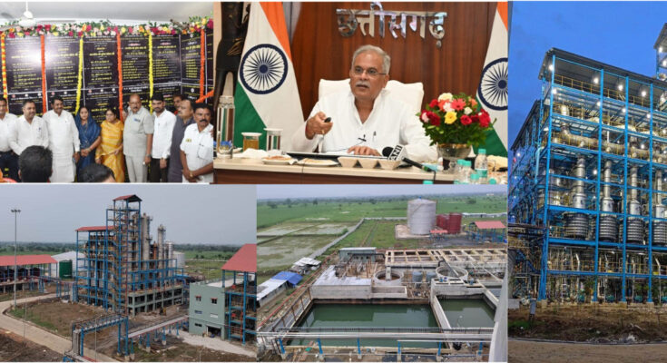 Chief Minister Shri Bhupesh Baghel today inaugurated the state’s first sugarcane based ethanol plant at a cost of Rs 141 crore through video conferencing from his residence office. Forest and Climate Change Minister Shri Mohammad Akbar was specially present along with the Chief Minister on the occasion of inauguration. The state government has established the state’s largest and first sugarcane based ethanol plant in Kabirdham district. The ethanol plant has been established in 35 acres of vacant plot of Bhoramdev Cooperative Sugar Factory. It is noteworthy that agriculture based ethanol industry is the dream project of Chief Minister Shri Bhupesh Baghel.