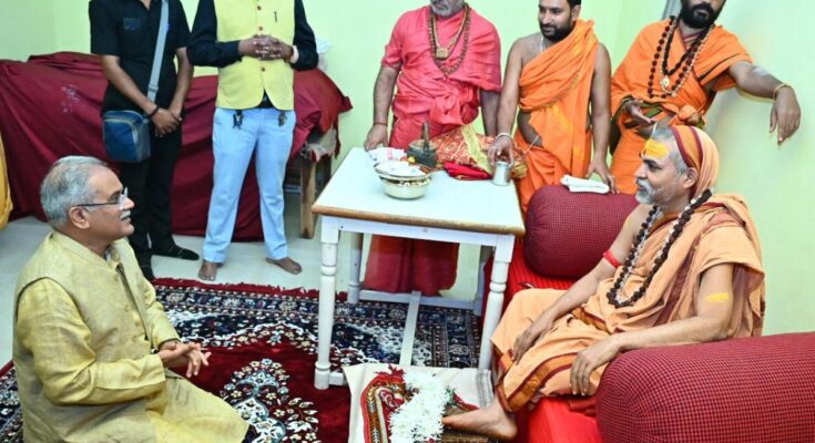 Raipur: Chief Minister Shri Bhupesh Baghel met Swami Shri Avimukteshwaranand Saraswati Ji Maharaj and blessed him.