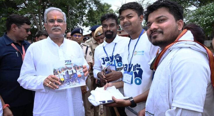 Chief Minister Shri Bhupesh Baghel today released the coffee table book ‘Jai Ho Jashpur’ in Jashpur during his meet-and-greet campaign. In the book, the work being done for public awareness on the health of adolescent girls, all-round development and social issues like child marriage, migration, drug de-addiction has been compiled. These works are being done under the ‘Jai Ho’ initiative under the aegis of District Administration, UNICEF and Darshan Foundation.