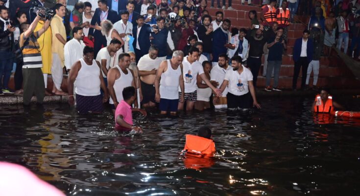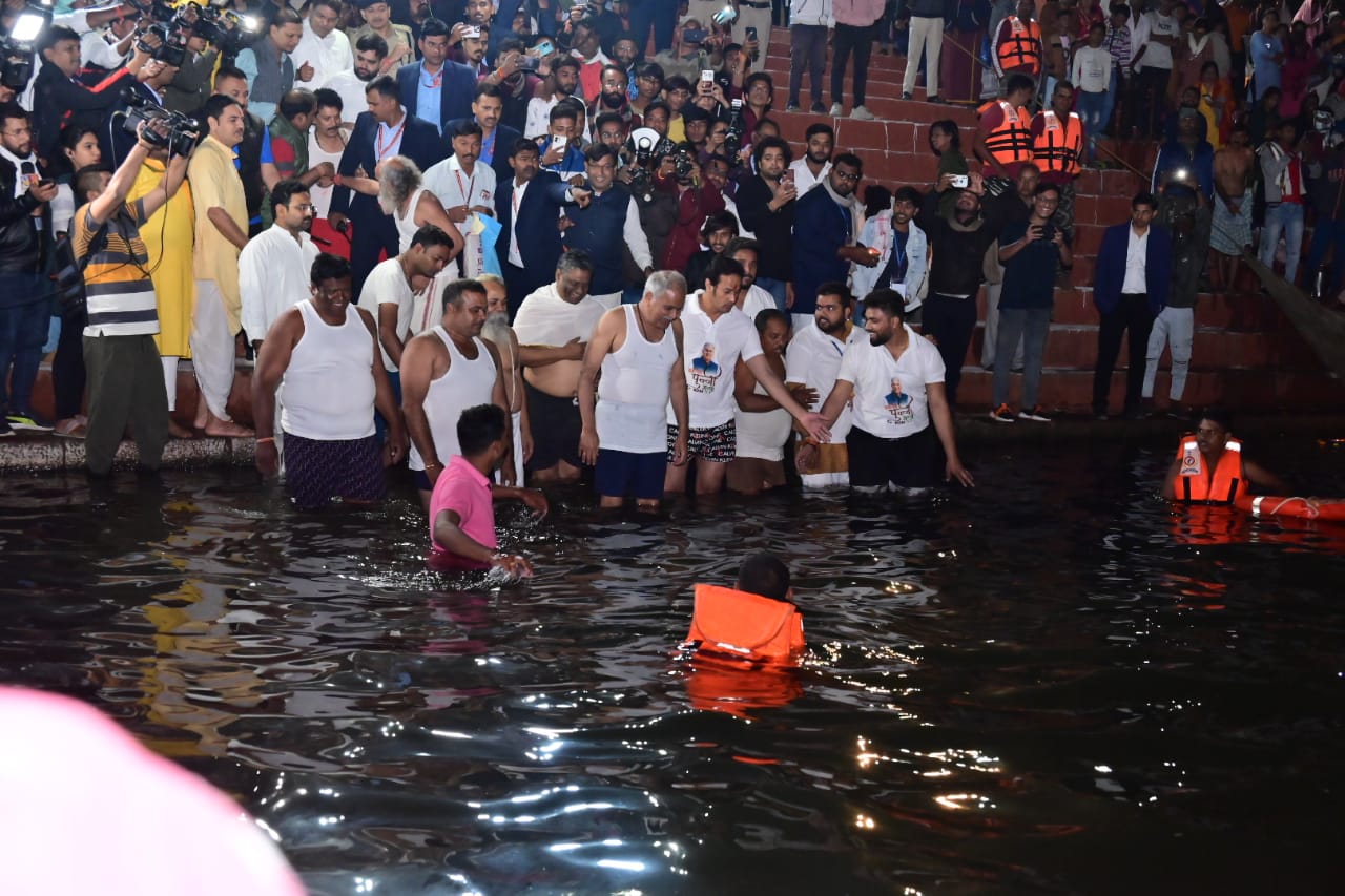 Chief Minister Shri Bhupesh Baghel reached Mahadev Ghat in Raipur in the morning on the occasion of Kartik Punni and prayed for the happiness and prosperity of the people of the state by taking a Kartik Purnima bath in Kharun river. On this occasion, the Chief Minister congratulated and extended best wishes to all the people of the state on the occasion of Kartik Punni Mela.