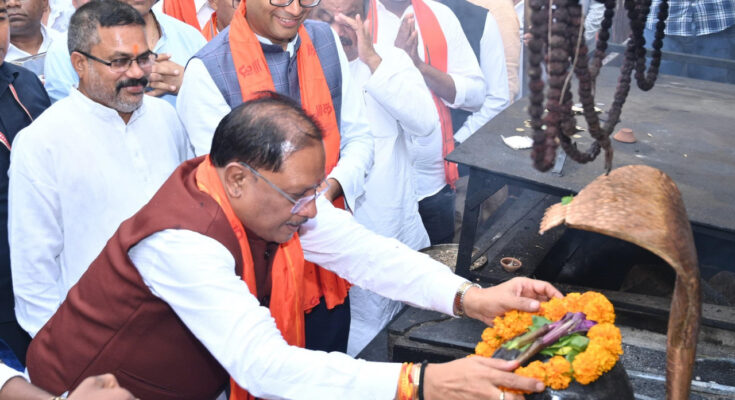 On the auspicious occasion of Guru Purnima, Chief Minister Shri Vishnu Dev Sai reached Shri Shri 108 Shri Satyanarayan Baba Dham located in Kosamnara village of Raigarh district and performed ritualistic worship of Lord Bholenath and prayed for the happiness, prosperity and happy life of the people of the state.