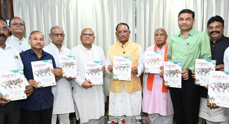 Chief Minister Shri Vishnu Dev Sai released the brochure of ‘Swadeshi Mela’ to be organized by the Indian Marketing Development Center in various districts of Chhattisgarh at his residential office today. The Chief Minister congratulated the delegation for organizing the program.
