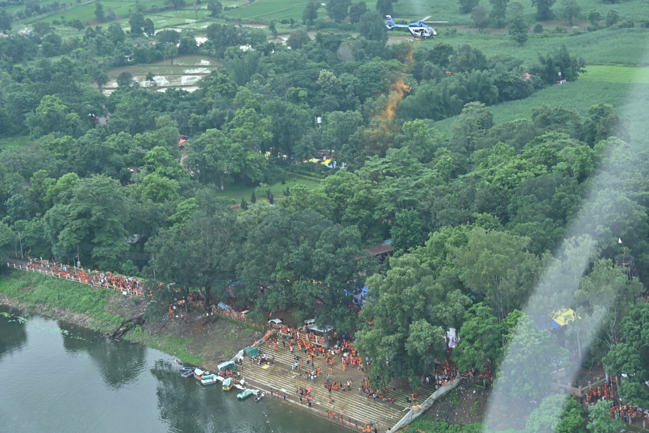 Chief Minister Shri Vishnudev Sai today welcomed thousands of devotees on the occasion of the holy month of Sawan at Baba Bhoramdev temple, an ancient, archaeological, religious and historical place of the state, by showering flowers on them from a helicopter. In this historic event, Chief Minister Shri Sai welcomed the devotees and pilgrims with the slogans of Har-Har Mahadev and Bol Bam and encouraged them. Along with the Chief Minister, Deputy Chief Minister Shri Vijay Sharma also welcomed the devotees.