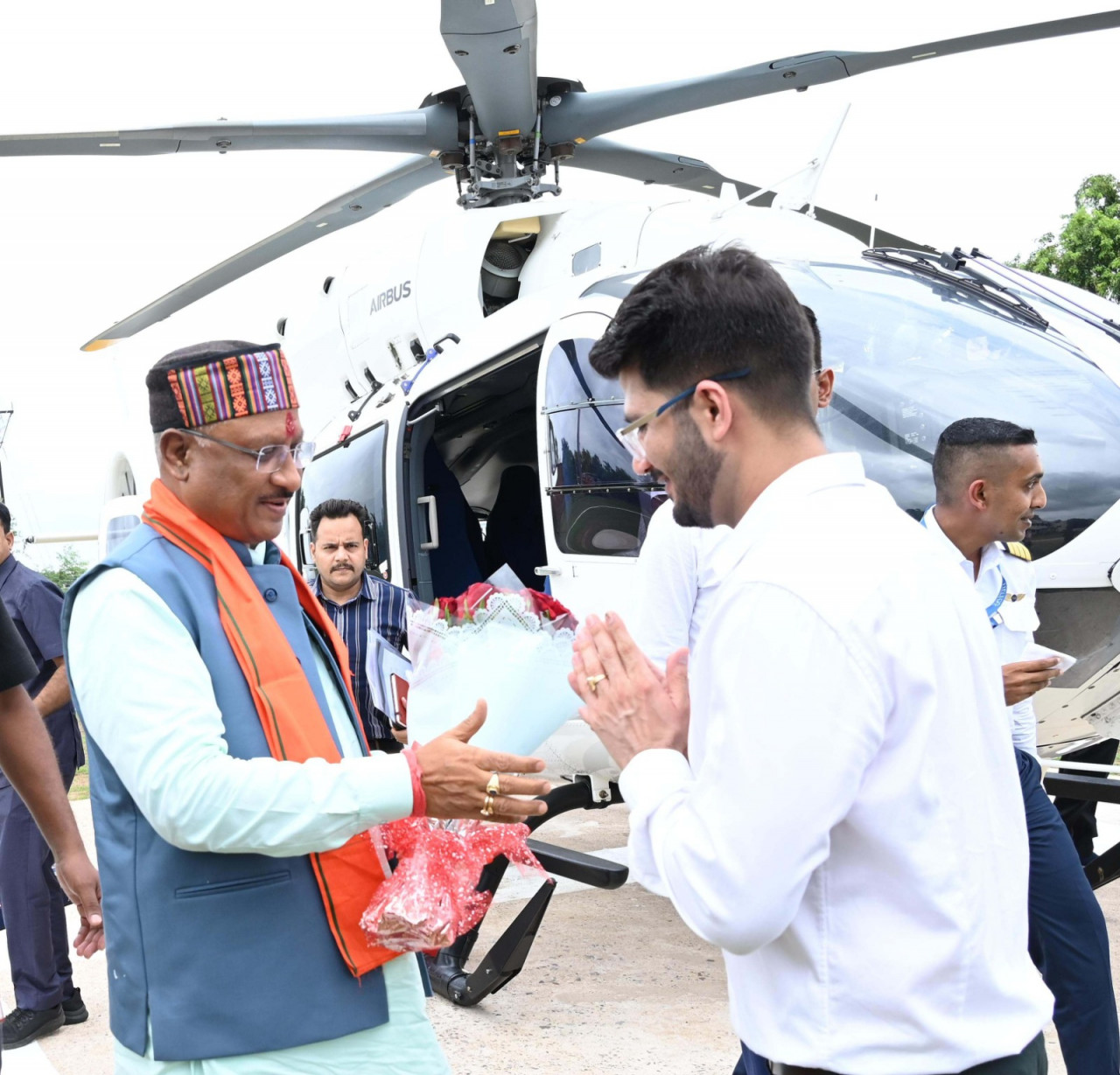 Chief Minister Shri Vishnudev Sai, who arrived at the cultural building inauguration and Rani Durgavati Balidan Diwas celebrations organized by Adivasi Gond Samaj Mavali Mahasabha in Bhatapara town, was given a warm welcome on reaching the local helipad. Bhatapara MLA Shri Indra Saw, Bhatapara former MLA Shri Shivratan Sharma, Bilaigarh Shri Sanam Jangde, local public representatives, community leaders, Collector Shri Deepak Soni, Senior Superintendent of Police Shri Vijay Agarwal, DFO Shri Mayank Agarwal, District Panchayat CEO Ms Divya Agarwal, Additional Collector Ms Deepti Gaute along with public representatives and officials gave a warm welcome to Chief Minister Shri Vishnudev Sai at the helipad. Raipur MP Shri Brijmohan Agarwal was also present during this time.