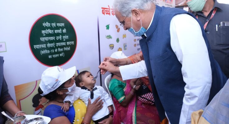 Raipur, 17 August 2021. On the initiative of Chief Minister Bhupesh Baghel to eradicate malnutrition, the statewide Mukhyamantri Suposhan Abhiyan started from October 2, 2019, the 150th birth anniversary of Mahatma Gandhi in Chhattisgarh, has started getting good response. The integrated planning and coordinated efforts of various schemes along with the Chief Minister’s Suposhan Abhiyan have achieved great success in eradicating malnutrition among children. In the state as of January 2019, the number of malnourished children identified was 4 lakh 33 thousand 541, out of which in the situation of May 2021, about one third 32 percent i.e. one lakh 40 thousand 556 children have become free from malnutrition. Which is a major achievement in the war started against malnutrition. The rate of malnutrition has come down significantly in a very short span of time, thanks to the efficient leadership and visionary thinking of Chief Minister Bhupesh Baghel.