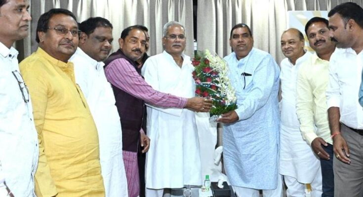 The delegation of Chhattisgarh Chandranahun Kurmi Kshatriya Samaj Raipur Raj met Chief Minister Mr. Bhupesh Baghel at his residence office this evening. The delegation invited Chief Minister Mr. Baghel to attend the annual session of Chandranahun Kurmi Kshatriya Samaj Raipur Raj. Chairman Mr. Keshav Nayakram Chandrakar told the Chief Minister that like every year, this year also the annual session of Raipur Raj is going to be held at Chandranahun Complex, Paragaon (Arang).