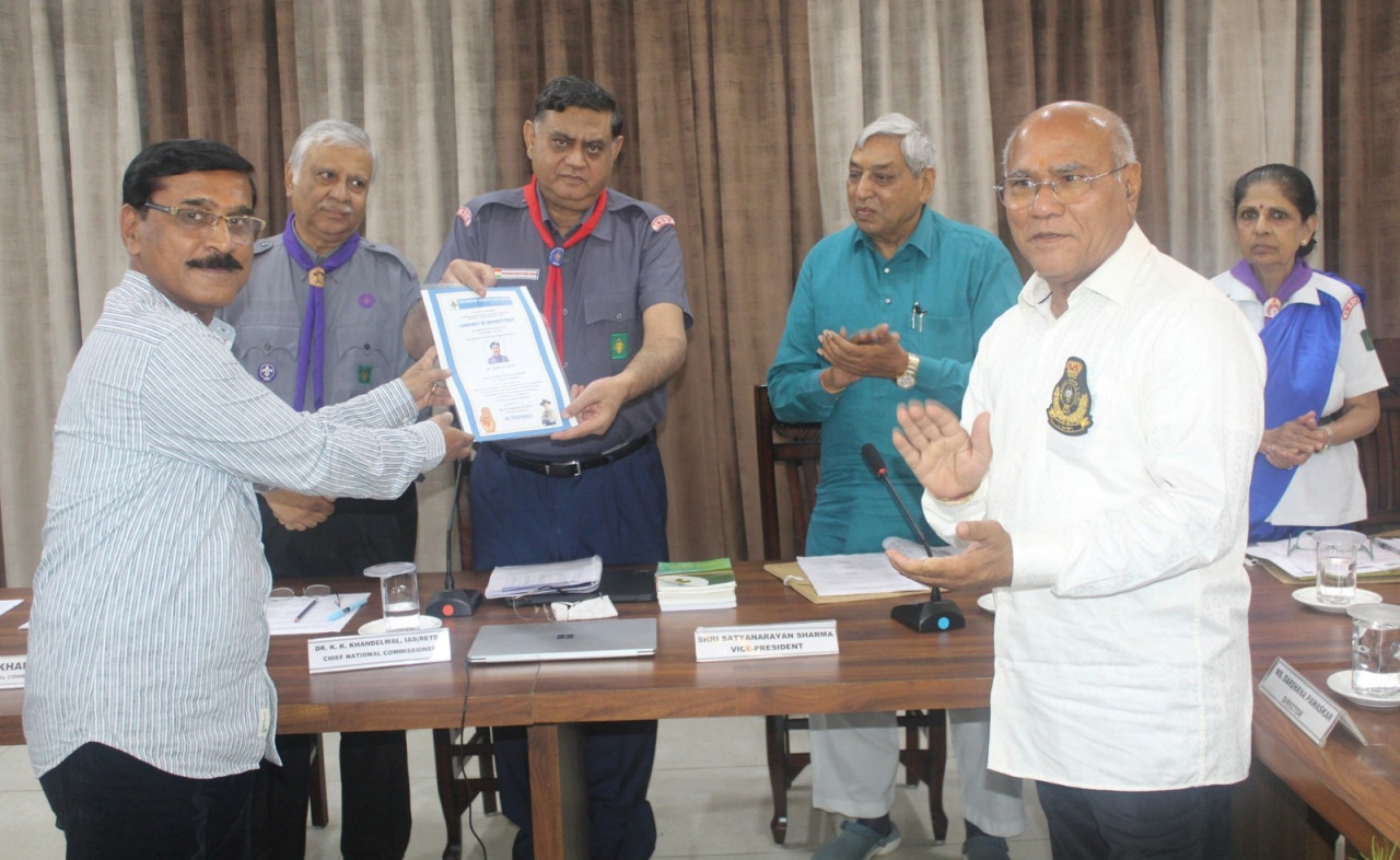 In the meeting, Chief National Commissioner Dr. K.K. Khandelwal provided the warrant of appointment to Dr. Somnath Yadav for the post of State Chief Commissioner. It is known that Dr. Somnath Yadav has been nominated to the post of State Chief Commissioner of Bharat Scouts and Guides, Chhattisgarh by Chief Minister Vishnudev Sai. Dr. Yadav took charge on 6 March.