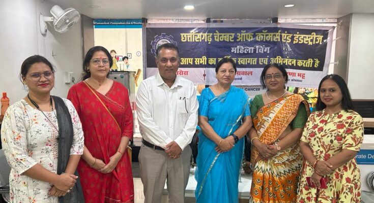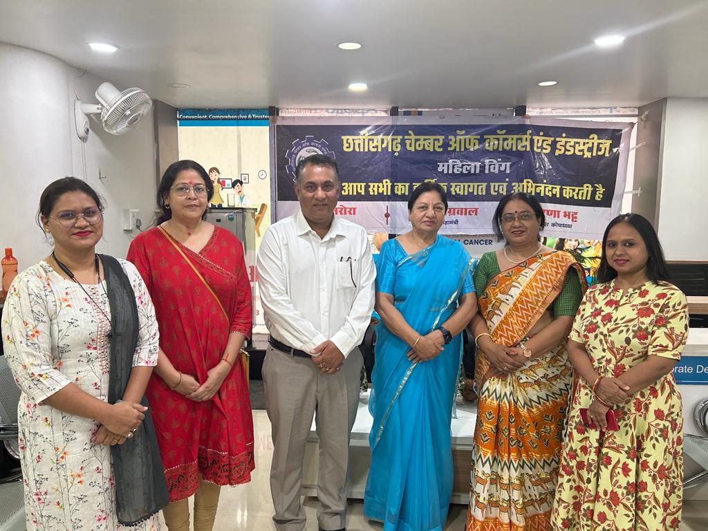 Raipur 05 June 2023. Chhattisgarh Chamber of Commerce and Industries Women’s Chamber President Madhu Arora said that on June 3, 2023, clinical breast examination was organized under the joint auspices of Women’s Chamber and Association of Apollo Clinics, in which Dr. Manju Singh and Dr. Anjana Nigam’s patronage 50 More than 100 women took advantage of clinical breast examination.
