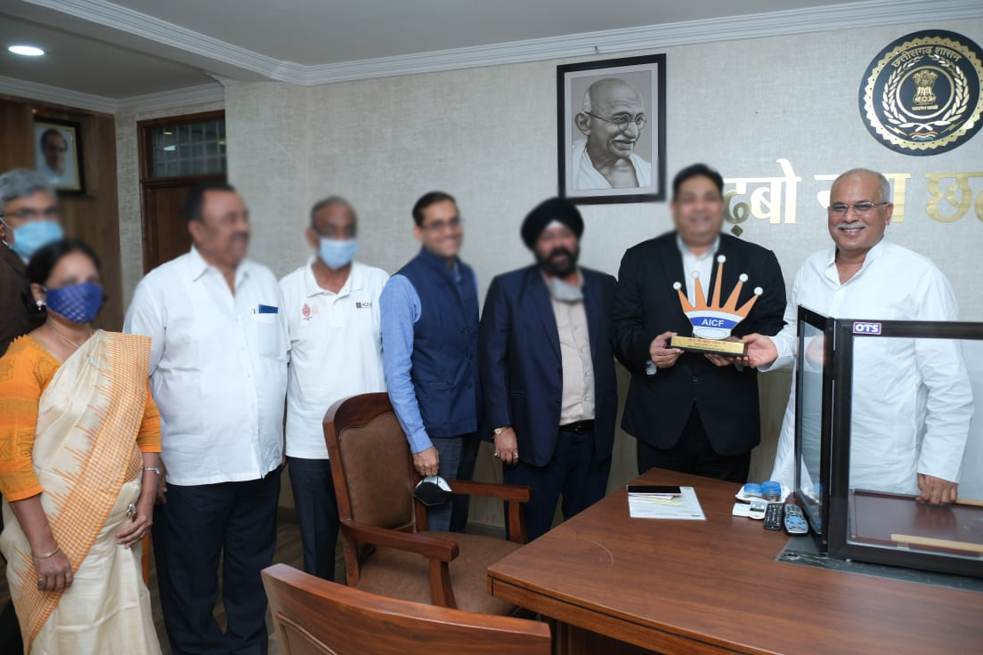 Raipur, 13 November 2021. All India Chess Federation General Secretary Bharat Singh Chouhan met Chief Minister Bhupesh Baghel today at his residence office under the leadership of Chhattisgarh Olympic Association General Secretary Gurcharan Singh Hora. He urged the Chief Minister to restart the competition of Chhattisgarh Chief Minister’s Trophy, International Grandmaster Chess Tournament Raipur. He also urged the Chief Minister that arrangements should be made for chess training in the tribal area to enhance the talent of chess players of Chhattisgarh. Chhattisgarh Chess Association President Shri Raghavendra Singhania, General Secretary Shri Vinod Rathi, International Chess Player Ms. Kiran Agarwal, Treasurer Shri Pradeep Das, Vice President Shri Hemchand Shekhar were present on this occasion.