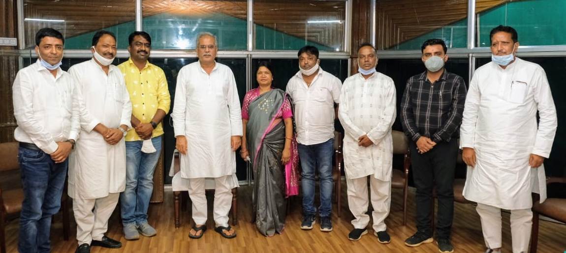 Raipur, 31 July 2021. A courtesy call on Chief Minister Mr. Bhupesh Baghel at his residence office here today. Chhattisgarh State Mineral Development Corporation Chairman Mr. Girish Devangan was also present on the occasion. The delegation discussed with the Chief Minister regarding upgradation of Pendra and Gaurela from Nagar Panchayat to Municipality. Omprakash Banka, Shri Shankar Patel, Smt. Boond Kunwar Singh, Ashish Kesari, Abhishek Rajput were present on this occasion.
